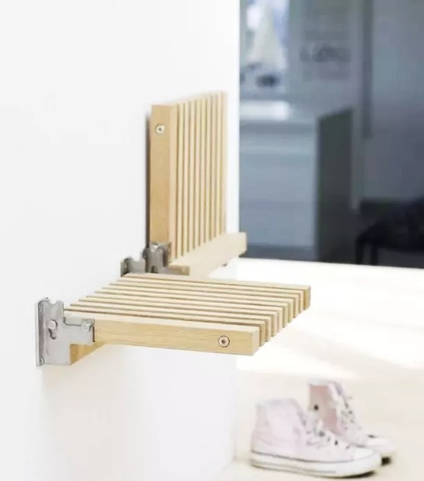 小玄关放不下凳子,可以试试这种壁挂式换鞋凳。