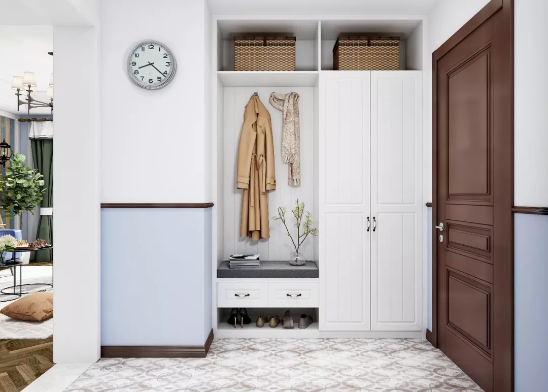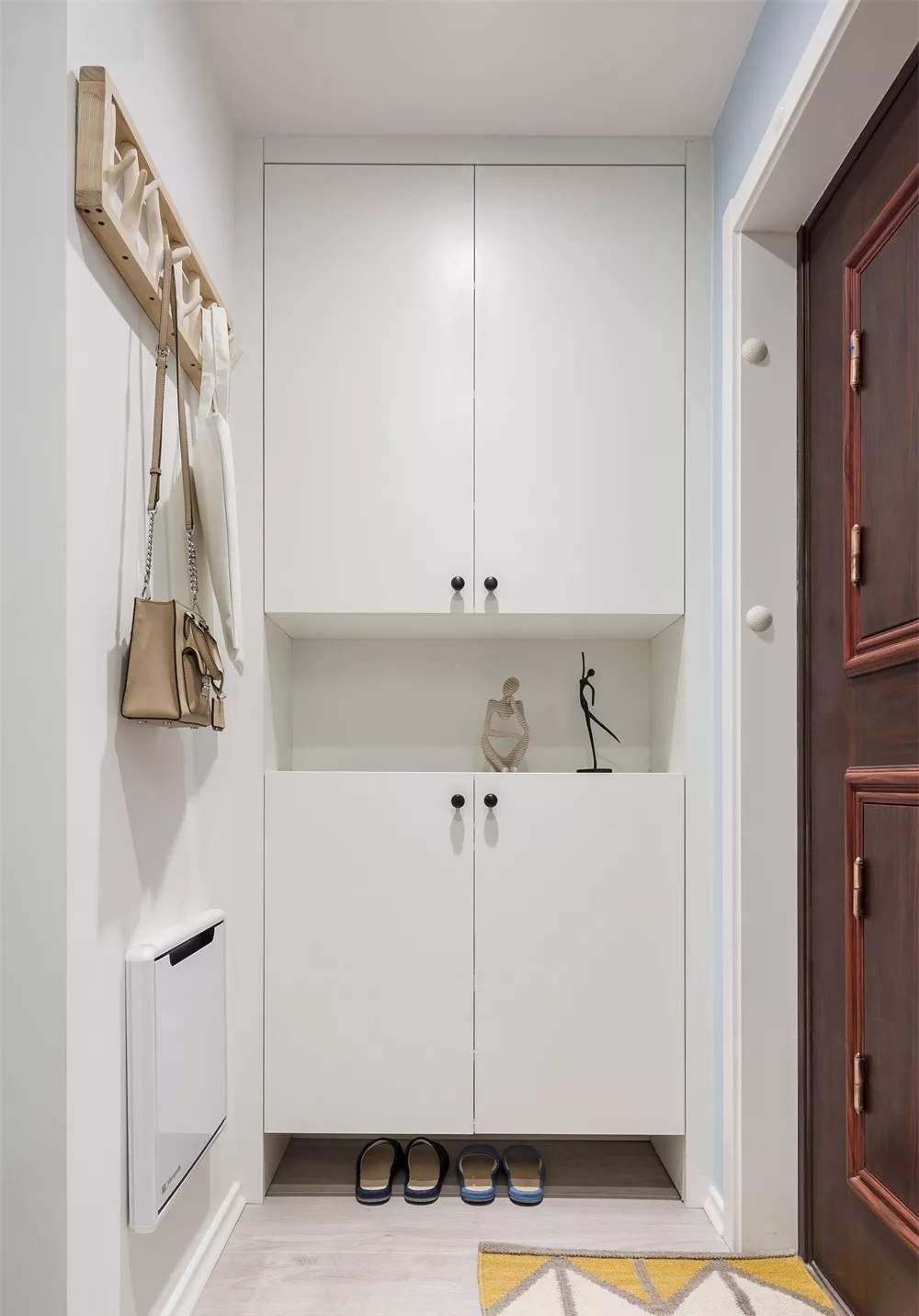 玄关作为进门第一眼就看到的地方,它的布置很重要,既要能放得下家人的鞋和杂物,又要美观大方,让人看着就觉得心情很好。