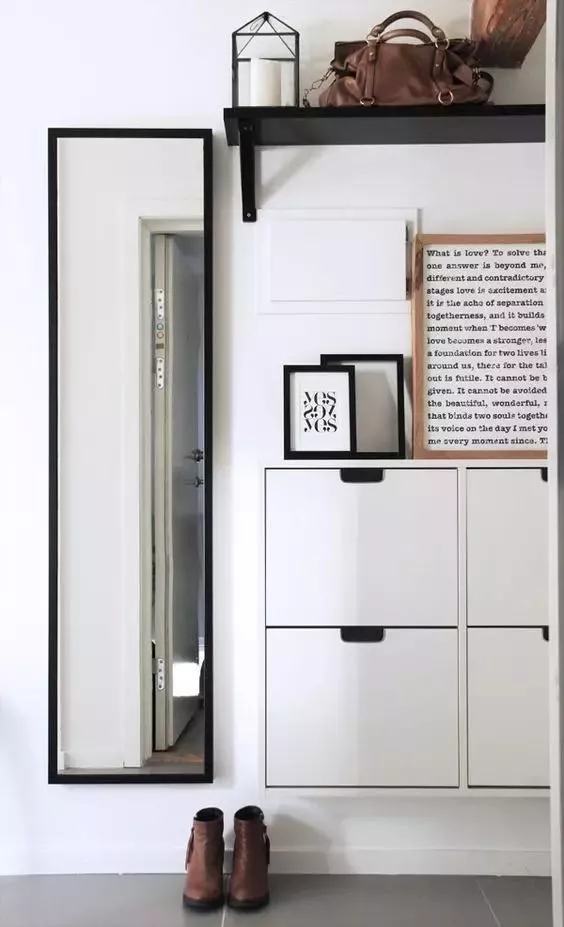 不过这种鞋柜的储量不大,除了常穿和应季鞋,其他的就放到卧室吧。