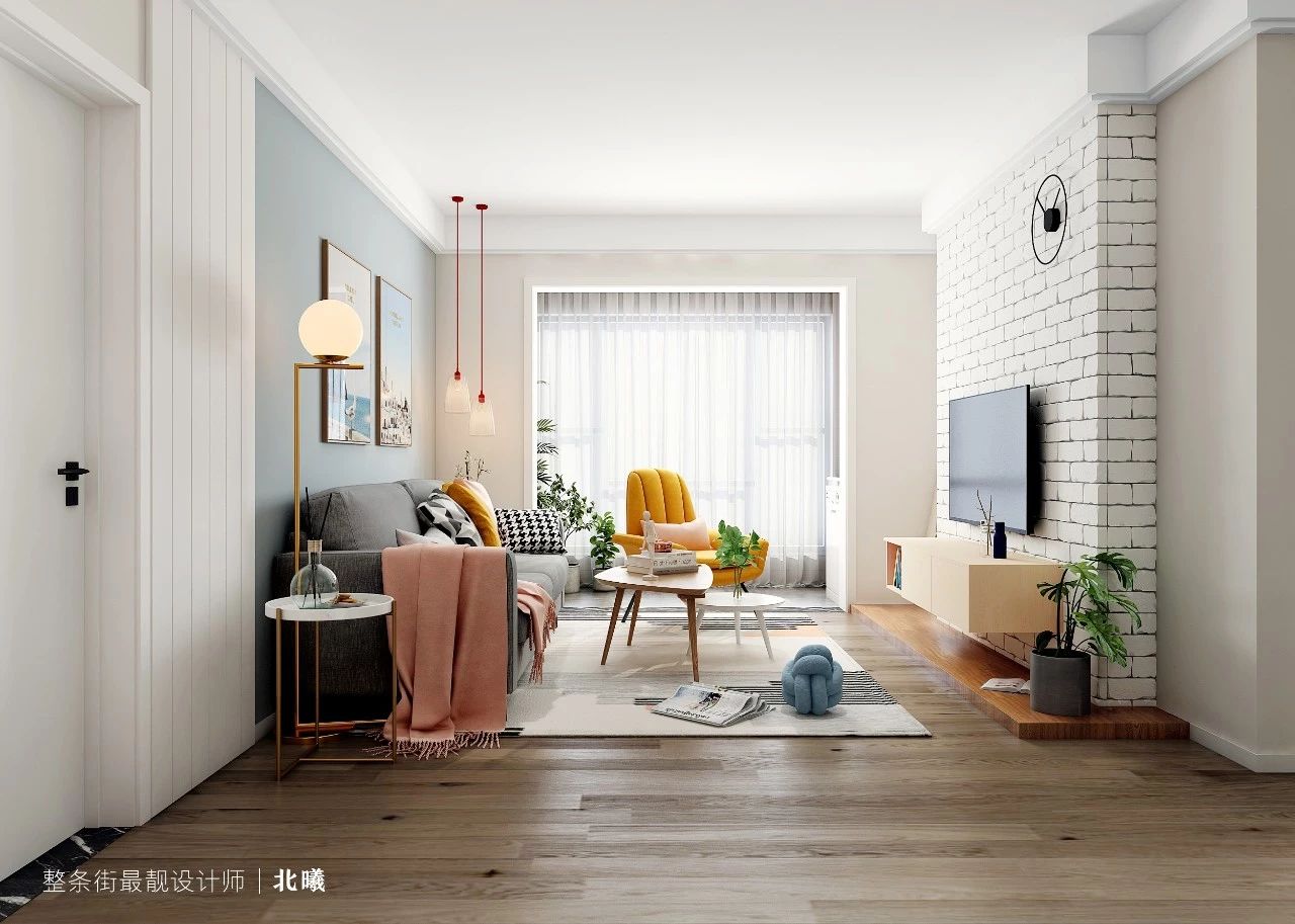 改造方案:客厅用落地玻璃采光,提升空间通透性,用浅色系打造温馨甜蜜的二人世界