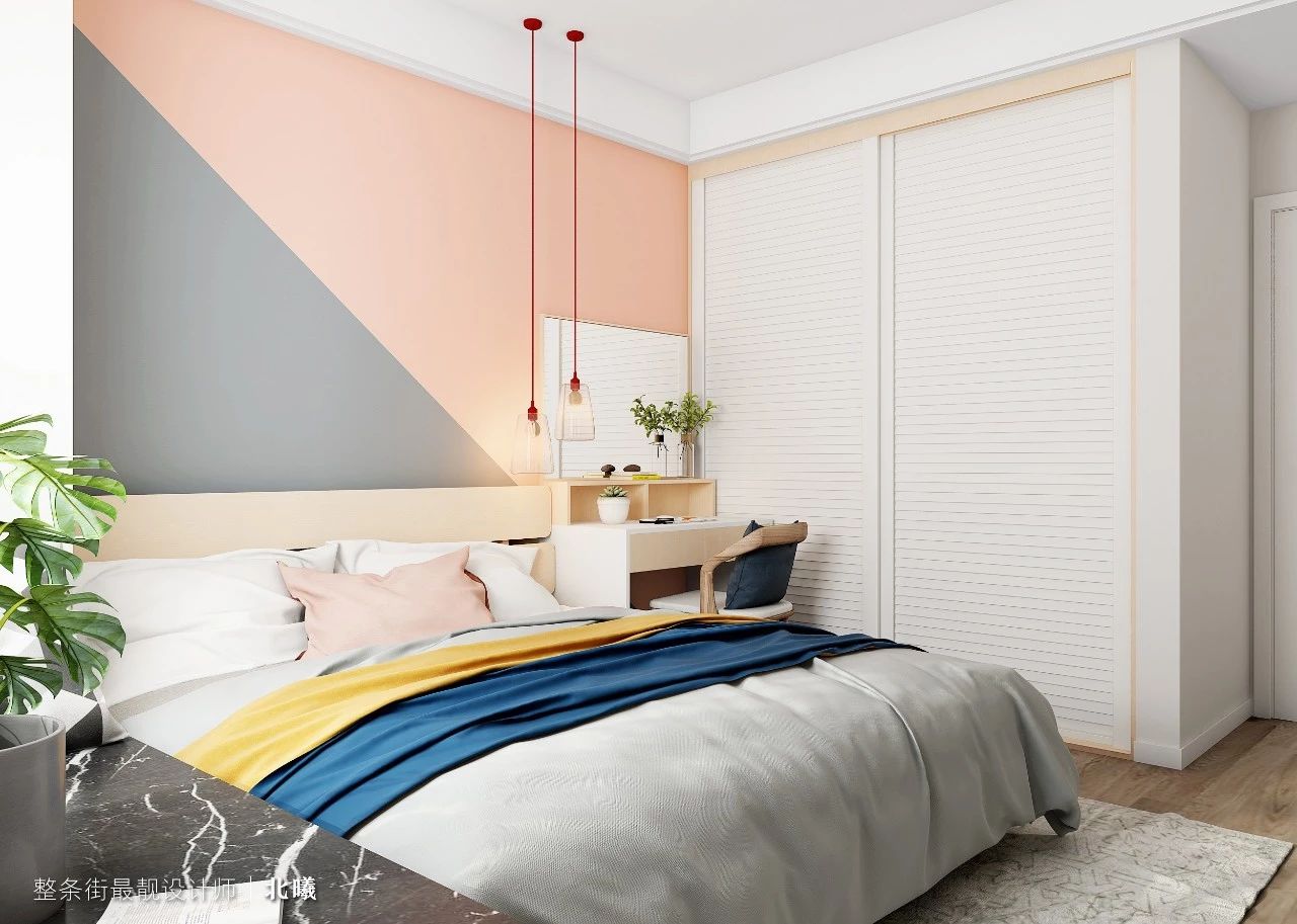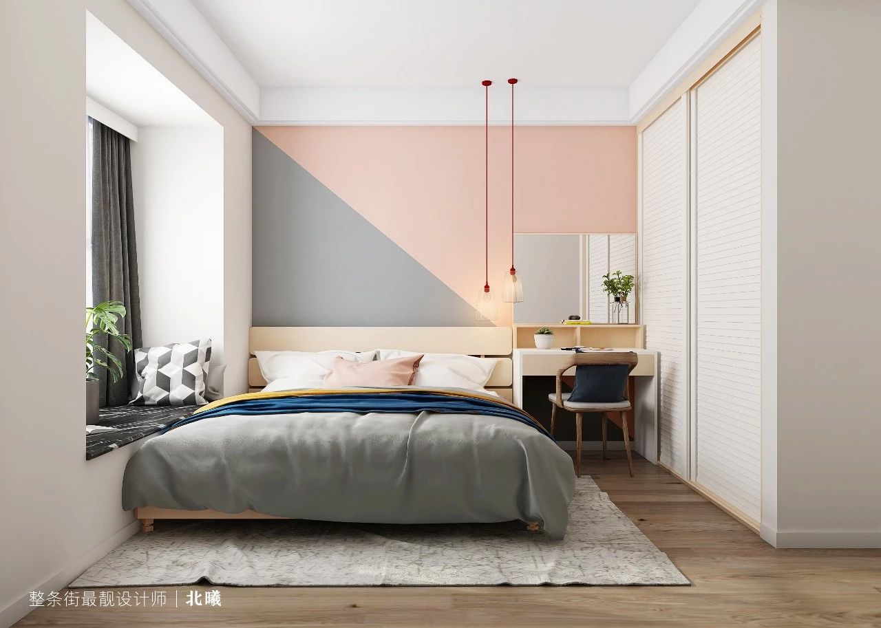 浅粉+浅灰的墙面,舒适而温馨