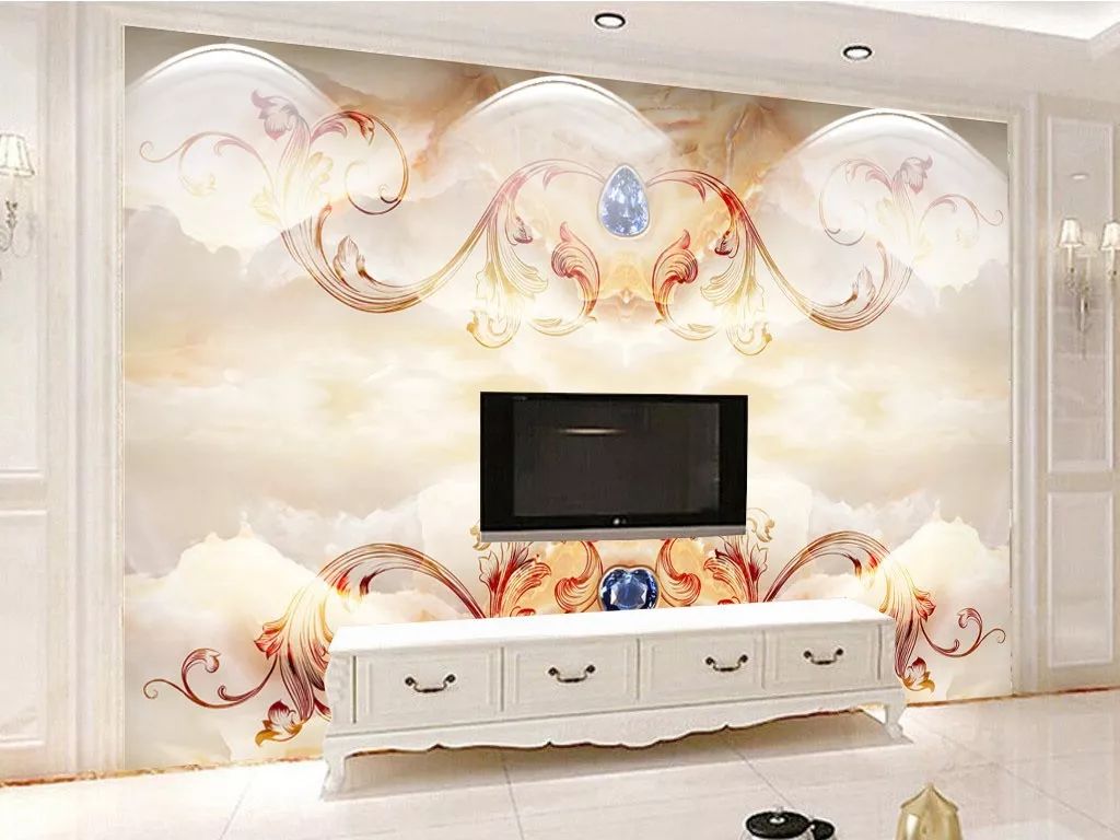 欧式大理石花纹图案,中间点睛的蓝色珠宝,原本的轻奢感消失殆尽,