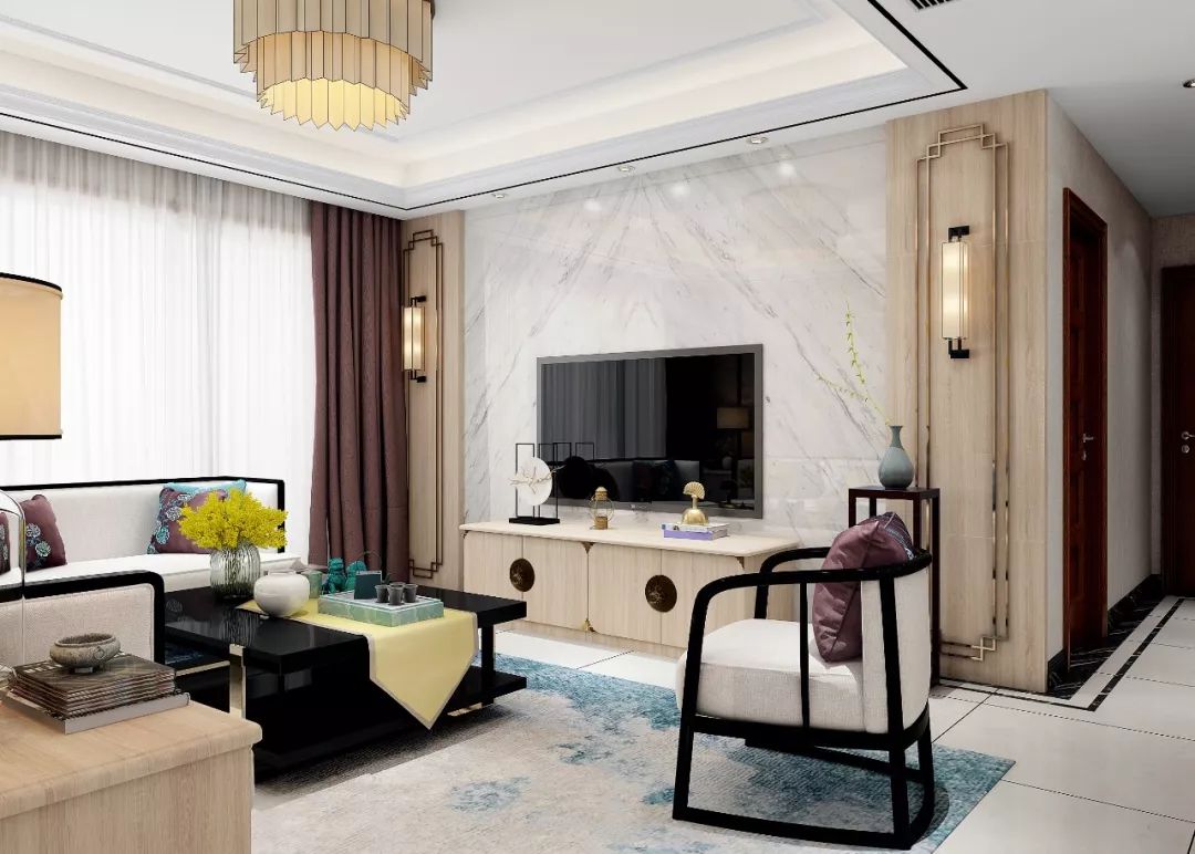 ▲新中式风格的电视柜,不妨在细节上玩点心机。比如在把手和柜子四周点缀上花纹,禅意立显