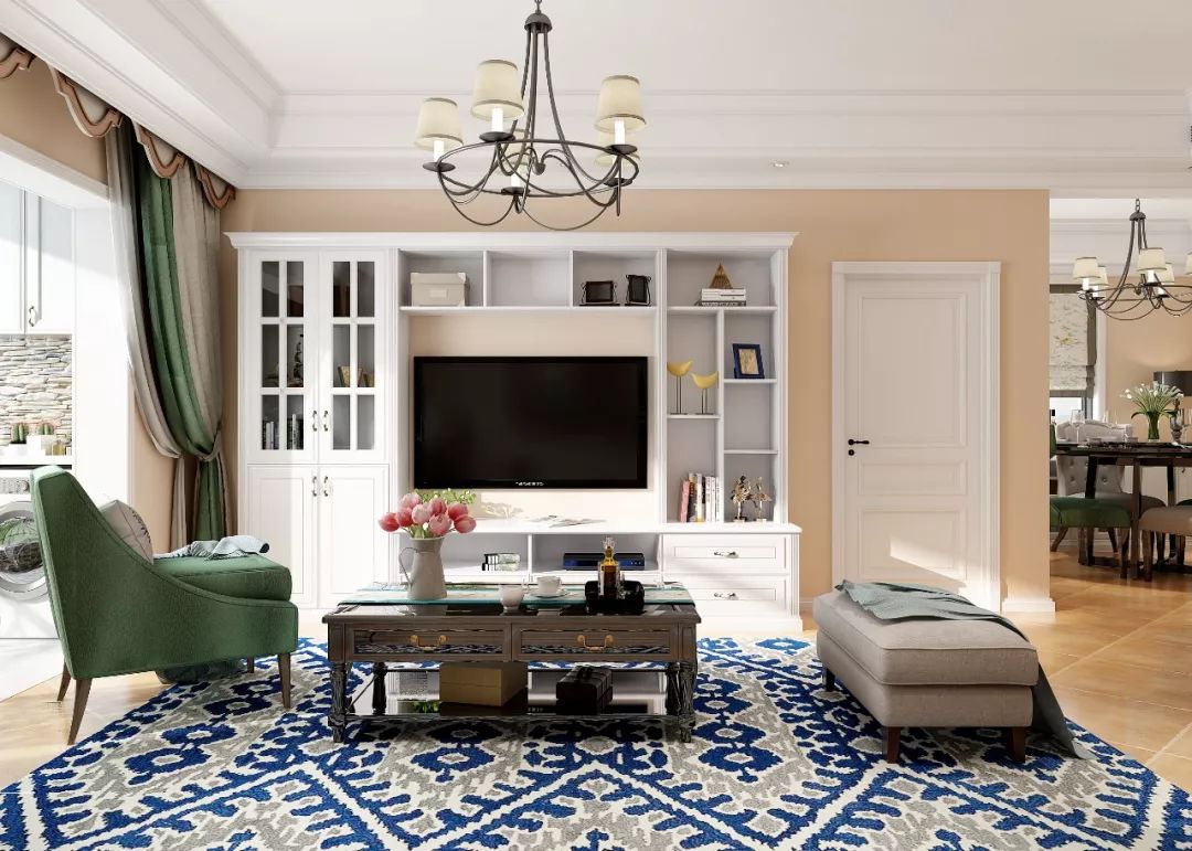 ▲美式风格的客厅,简练淡雅的电视柜,给人以优雅的格调感
